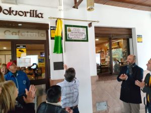 Una placa donde se recoge: “El Ayuntamiento de Los Barrios en reconocimiento a Don José Antonio Morales Rojas por su excelente servicio en Los Cortijillos al frente de la cafetería El Polvorilla desde el año 2007”.