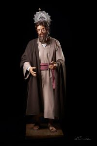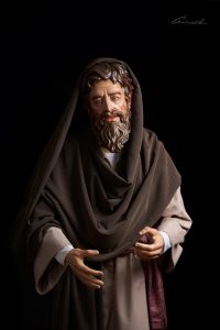 Con este trabajo, el laureado escultor, pintor e imaginero barreño comienza la creación escultórica del “Misterio” que está llevando a cabo por encargo de la citada hermandad de penitencia de Los Barrios (Cádiz). La imagen de Santiago que procesionará mañana por las céntricas calles de este municipio gaditano refleja en el rostro la alegría de su llegada a Jerusalén. Está esculpida en madera de cedro y policromada al óleo, con una altura de 180 cm.