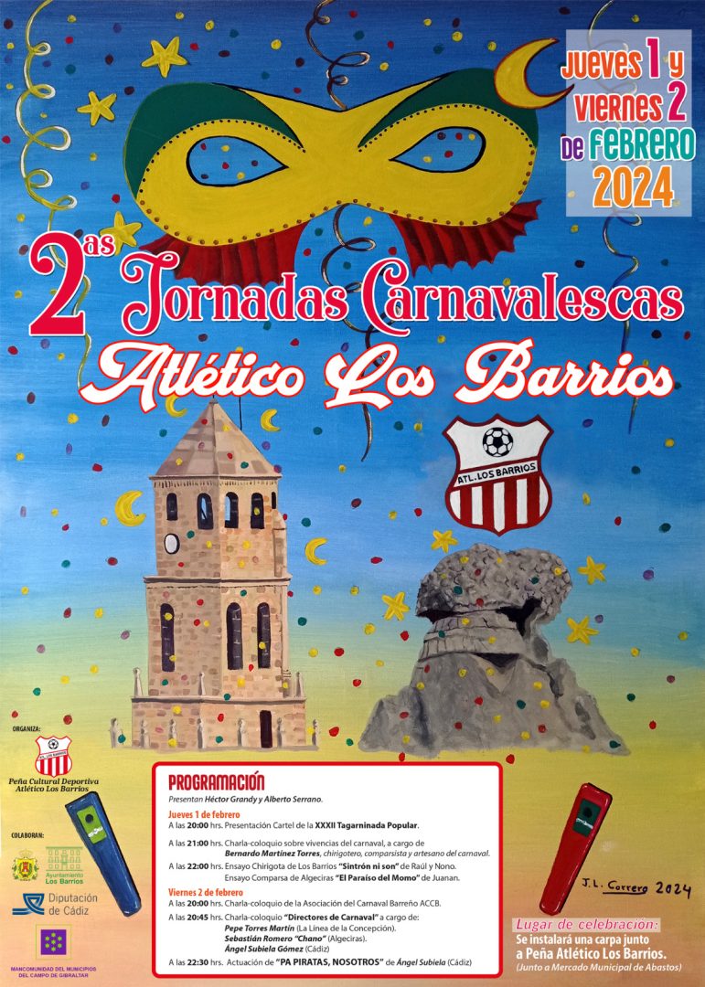 El viernes 2 de febrero la programación continuará con dos nuevos coloquios: el primero, a partir de las 20:00 h., con la Asociación Cultural Carnavalesca Barreña, y el segundo, a las 20:45 h., sobre “Directores de Carnaval”, con Pepe Torres Martín, de La Línea de la Concepción; Sebastián Romero “Chano”, de Algeciras, y Ángel Subiela Gómez, de Cádiz.